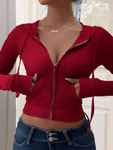 Womens Trendy Cropped Coat Zipper Front Raglan Sleeve Casual Hooded Jacket 1