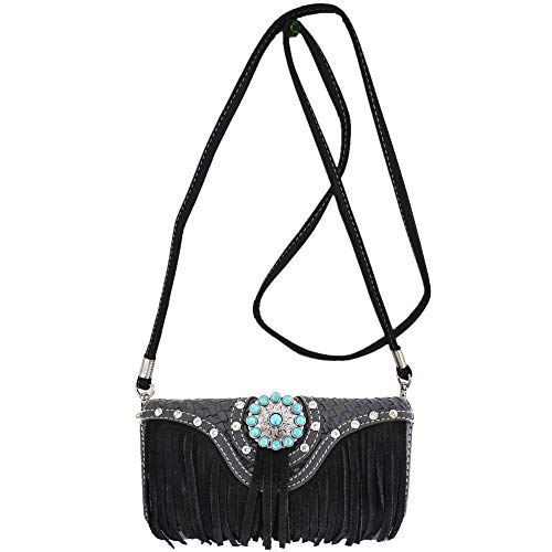 More information about Western Style Fringe Conchos Gem Rhinestone Studded Woven Leather Purse Country Handbag Women Shoulder Bag Wallet Set