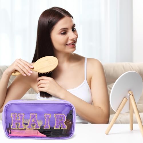 Hillban 4 Pieces Chenille Letter Cosmetic Bag Set Nylon PVC Clear Waterproof Makeup Pouch Stuff Hair Travel Bag Multi Purpose Aesthetics Toiletry Organizer for Women Gym Travel Beach (Light Colors) 6