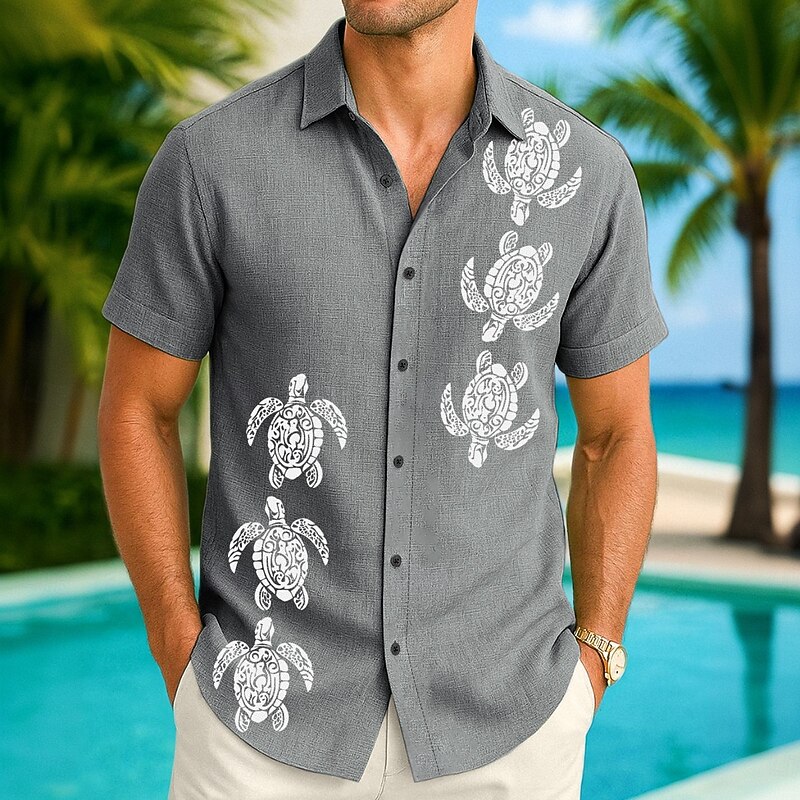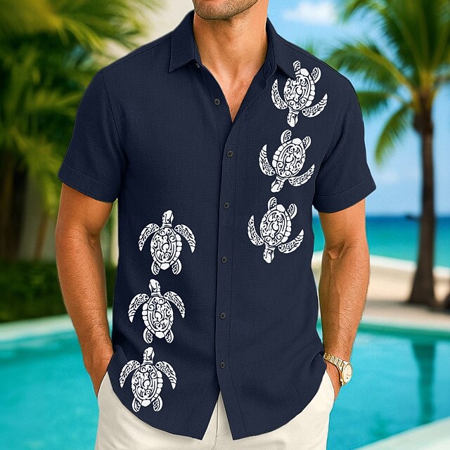 More information about Men's Shirt Linen Shirt Summer Shirt Beach Wear Button Up Shirt Solid Color Vacation Curise Black Navy Blue Green Gray Short Sleeve Collar Summer Spring & Summer Clothing Apparel Color Block