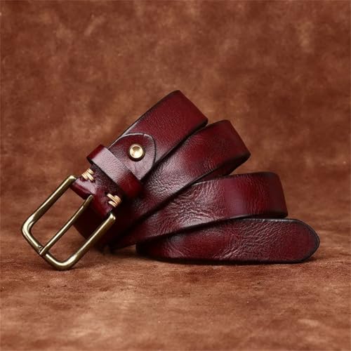 More information about 3.3cm Thick Genuine Cowhide Leather Belt for Men with Brass Buckle, Retro Style