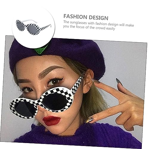Oval Sunglasses for Women Vintage Inspired Retro Sunglasses with Protective Lenses Adorable Checkered Frame for Parties and Novelty Events 2