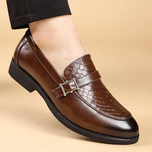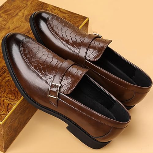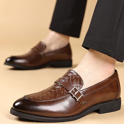 Men's Textured Chunky Heel Retro Loafers Classic Pointed Toe Buckle Decoration Non-Slip Slip-On Business Leather Shoes for Wedding, Work, Office 6