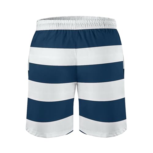 Navy Blue and White Stripe Men's Swim Trunks Summer Beach Shorts Casual Board Shorts Golf Shorts 7