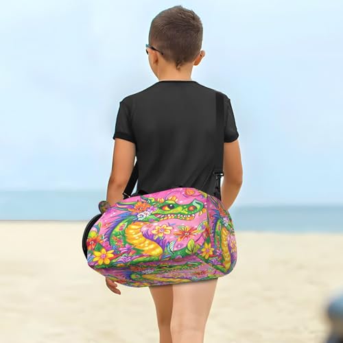 Gym Travel Duffle Bag for Boys Girls Colorful Dragon Sports Dance Bag with Shoe Compartment & Wet Pocket Football Kids Travel Bag Teens Sleepover Carry 4