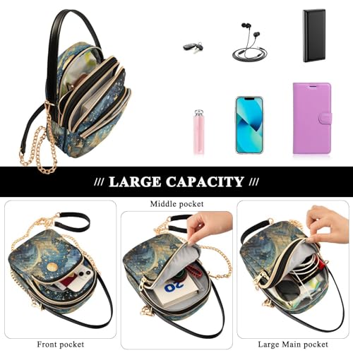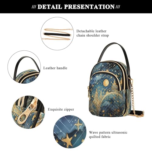 ALAZA Quilted Crossbody Bags for Women,Star Moon Blue Women's Crossbody Handbags Small Travel Purses Phone Bag 3