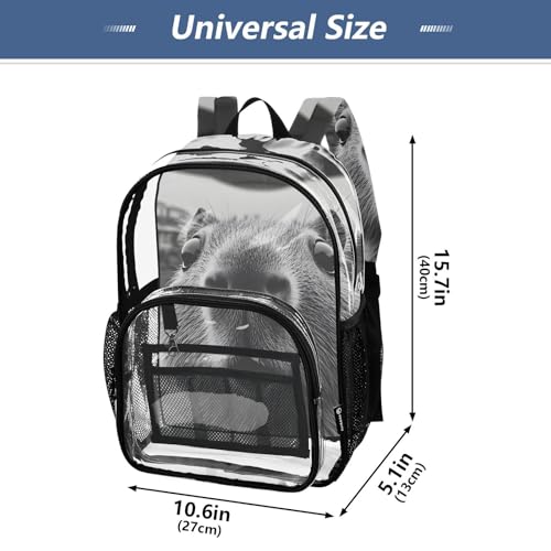 Capybara Surprise Funny Clear Backpack, PVC Transparent Bag with Large Capacity for Boys, Girls, Men, Women, See Through Bookbag for School Work College Travel 6