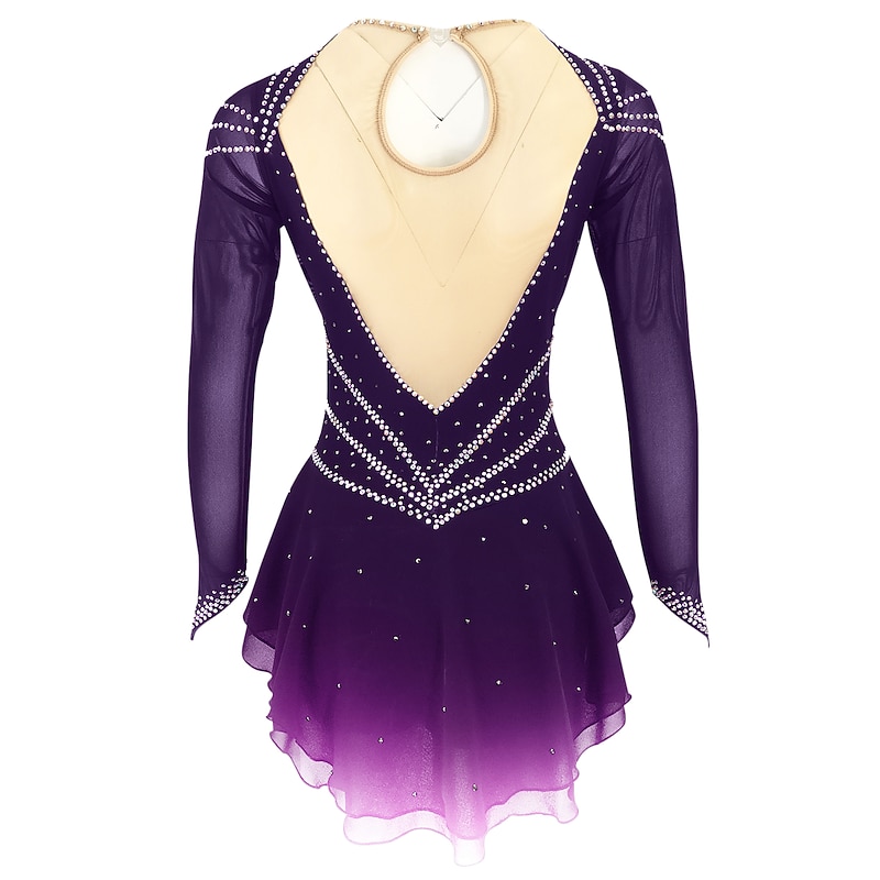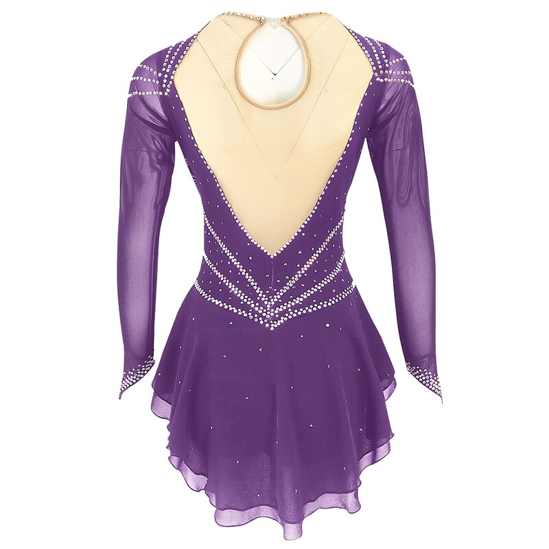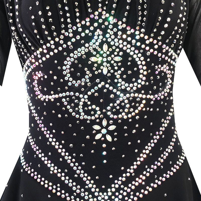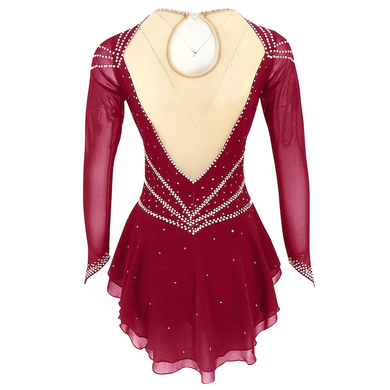 More information about Figure Skating Dress Women's Girls' Ice Skating Dress Outfits Black Yellow Dark Red Open Back Spandex Stretch Yarn High Elasticity Training Skating Wear Solid Colored Classic Crystal / Rhinestone