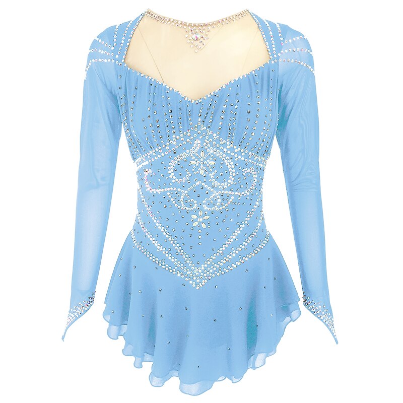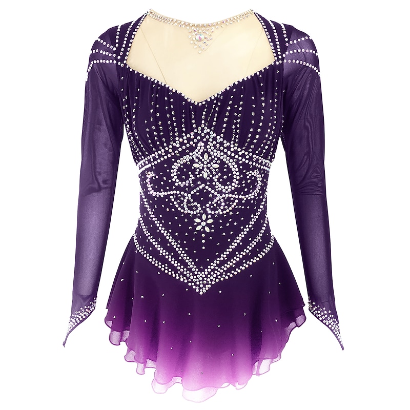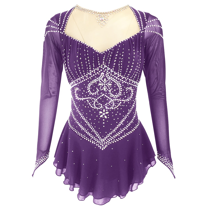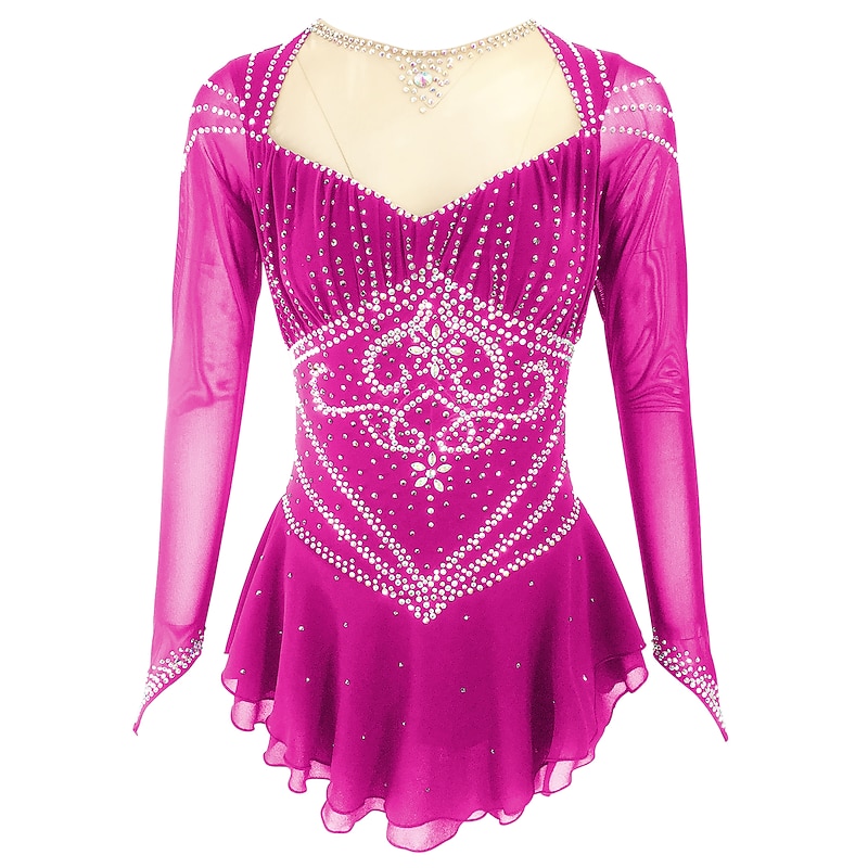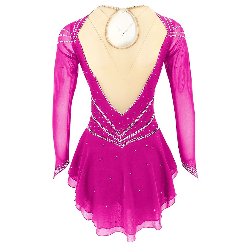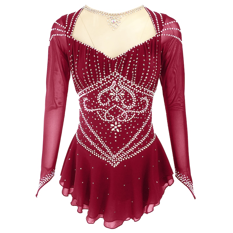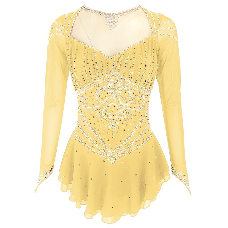 Figure Skating Dress Women's Girls' Ice Skating Dress Outfits Black Yellow Dark Red Open Back Spandex Stretch Yarn High Elasticity Training Skating Wear Solid Colored Classic Crystal / Rhinestone 10