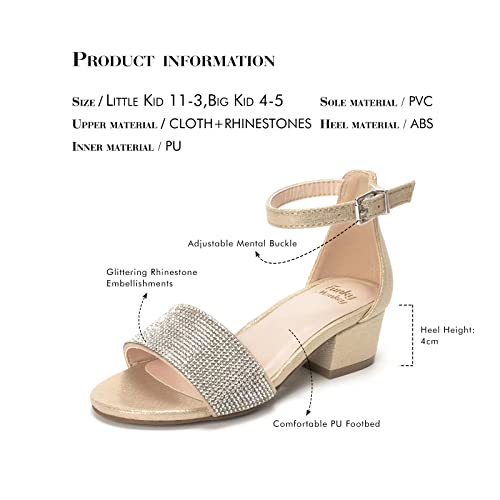 FUNKYMONKEY Girls Low Heels Sandals Open Toes with Ankle Strap Rhinestone Dress Shoes for Kids 4