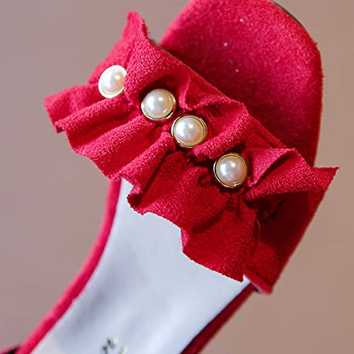 Little Big Girls Flower Pearl Middle High Heel Princess Sandals Kids Shoes Dress Platform Open Toe Summer Sandals 6