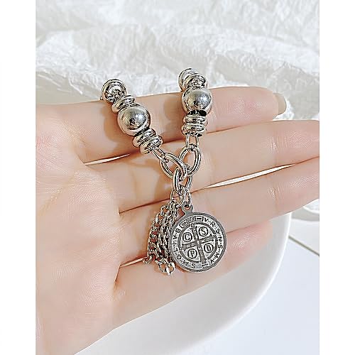 TEMICO Stainless Steel Cross Saint Benedict Coin Charm Bracelet for Women Catholic Exorcism Protection Jewelry 6