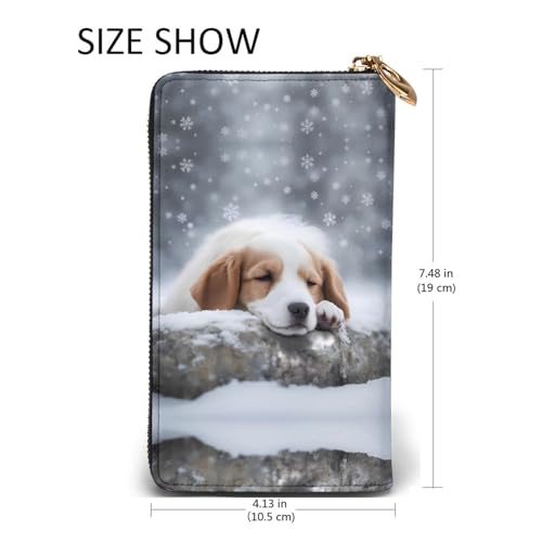 HOT ! Leather Wallet 7.48 x 4.13 in - Stylish and Durable Wallet for Women with Multiple Compartments and Zipper Design A Sleeping dog Pattern