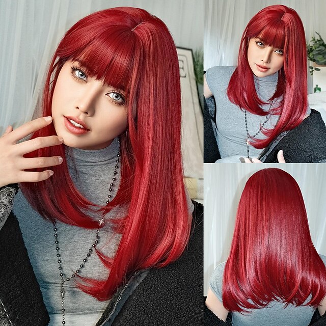 26 Inch Synthetic Wig Women's Wig Gradient Color with Red Long Straight Hair With Bangs Fashion Daily Party Cosplay 4