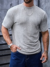 More information about Men's T Shirt Knit Tee Tee Top Short Sleeves Crew Neck Summer Plain Pit Strip Fashion Designer Basic Knitted Vacation Street Going out Gray Top Tee for Men