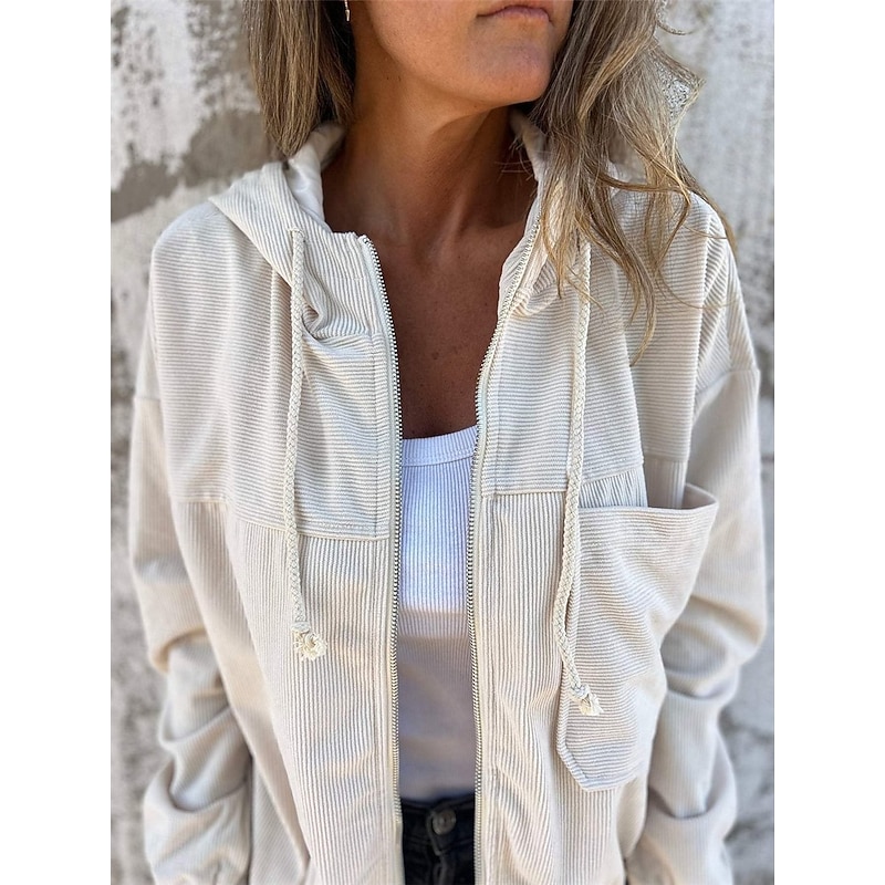 : Crafted from high-quality corduroy fabric, this women's hoodie jacket provides a soft and comfortable texture, making it an ideal choice for cooler seasons like fall and winter. The micro-elastic property of the fabric ensures a snug yet flexible fit.