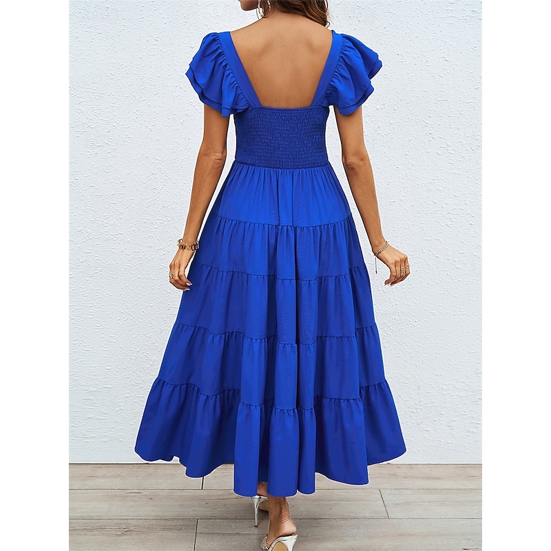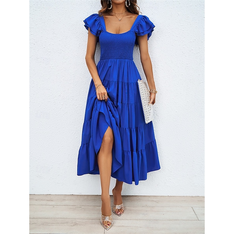 Women's Floral Square Neck Midi Dress Short Sleeve Summer Spring 11
