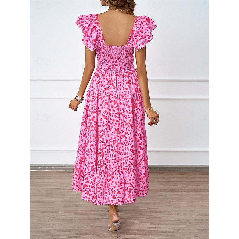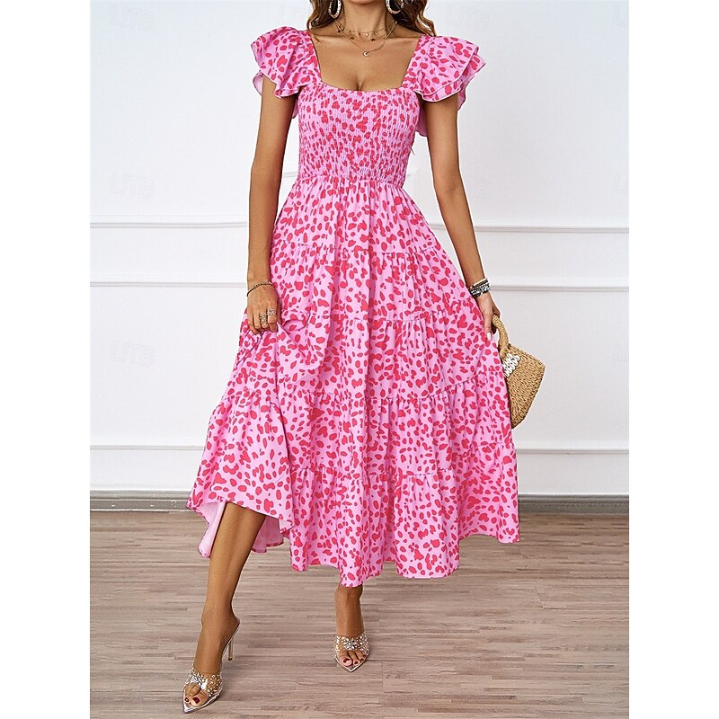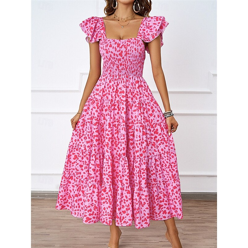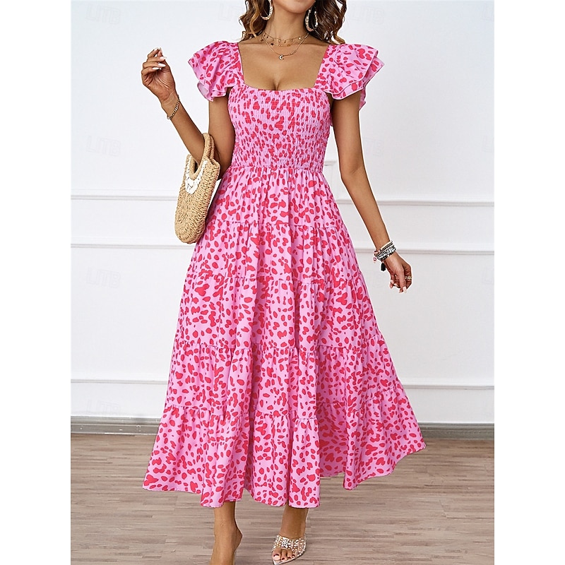 Women's Floral Square Neck Midi Dress Short Sleeve Summer Spring 2