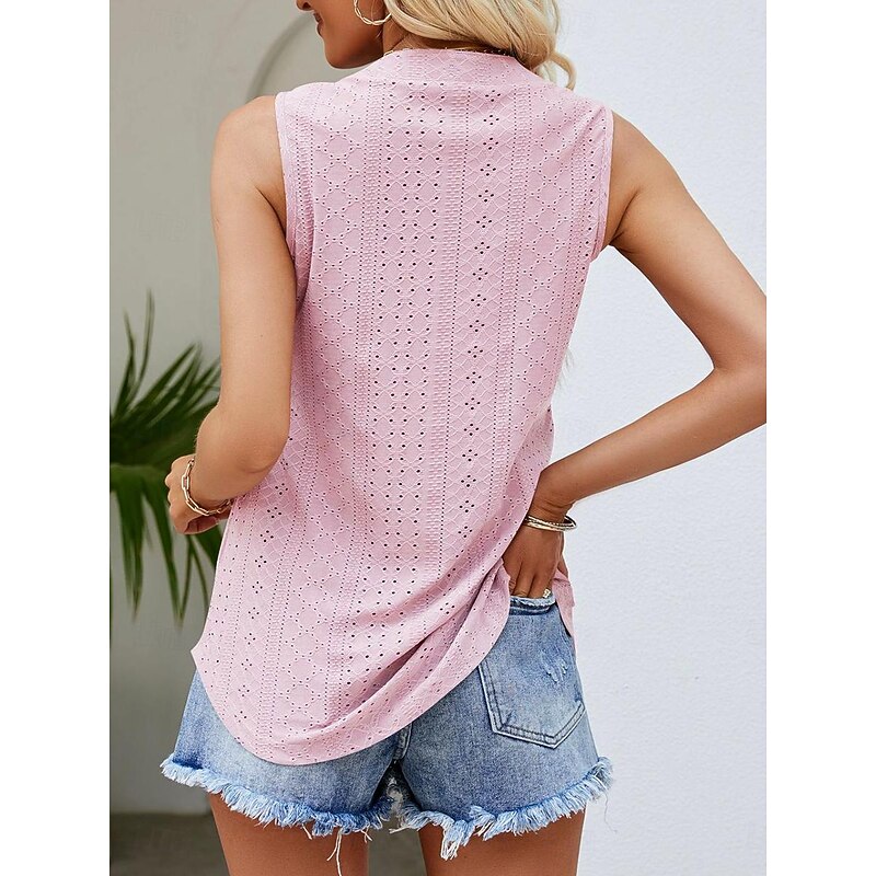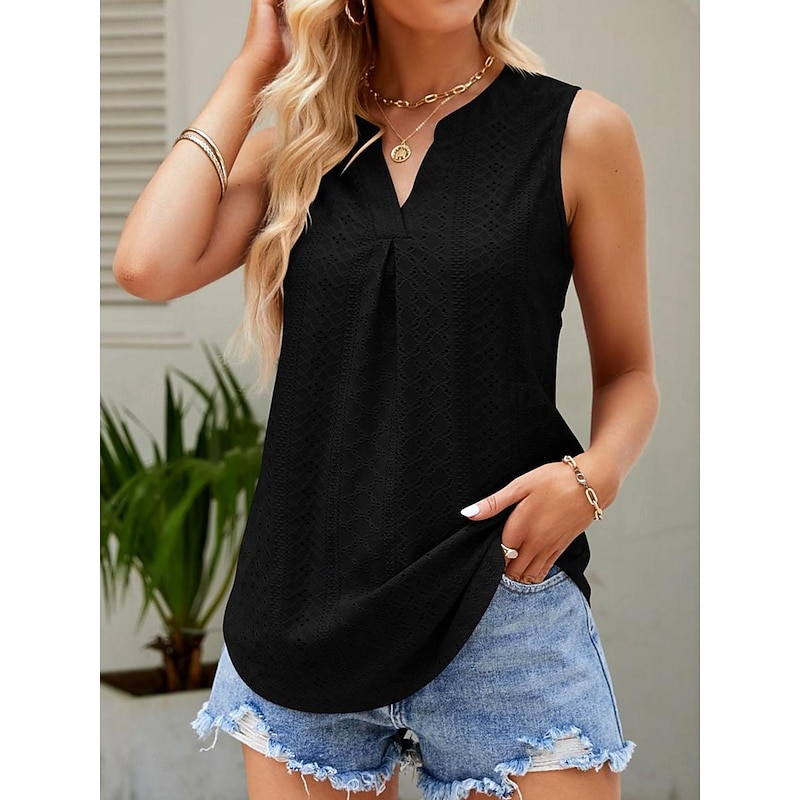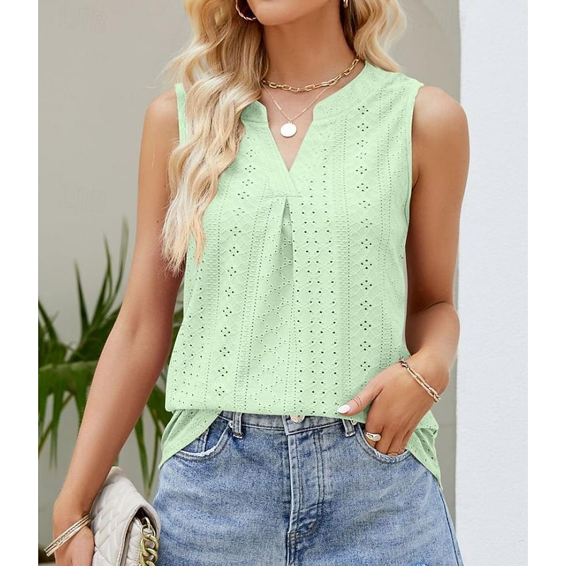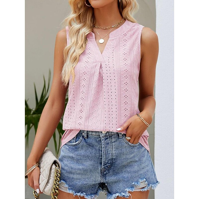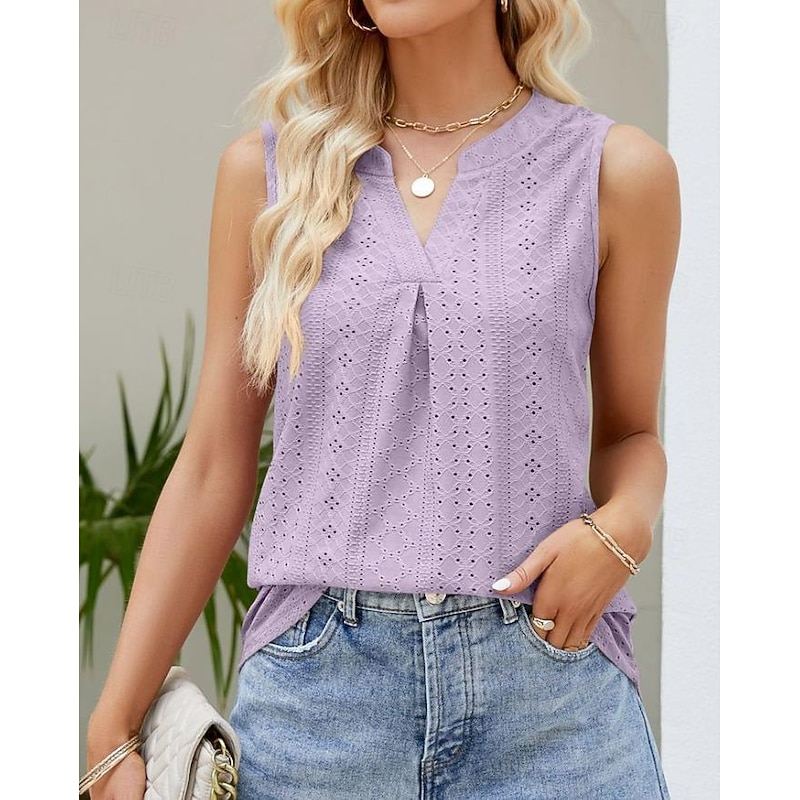 Highlights [Fabric] : Crafted from breathable and lightweight lace, this women's shirt ensures comfort and ease during the warm summer months. The delicate eyelet pattern not only adds a touch of sophistication but also provides slight elasticity for enhanced movement. [Style] : Featuring a classic crew neck and short sleeves, this lace shirt offers a casual yet chic style that pairs effortlessly with a variety of summer ensembles. Its soft fabric and elegant design make it a versatile wardrobe staple. [Design Highlights] : This shirt boasts a deep V-neck that adds an elegant touch, complemented by the intricate lace material that offers a feminine flair. The fine lace detailing enhances its overall appeal, making it perfect for fashionable women. [Occasions] : Ideal for summer outings, casual gatherings, or even a relaxed day out, this top seamlessly transitions from day to night. Whether paired with denim shorts for a laid-back look or dressed up with a skirt, it suits a wide range of occasions. [Size Range] : Available in various sizes, from S to 2XL, this lace shirt caters to a broad audience, ensuring a perfect fit for different body types.