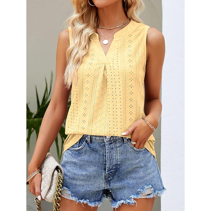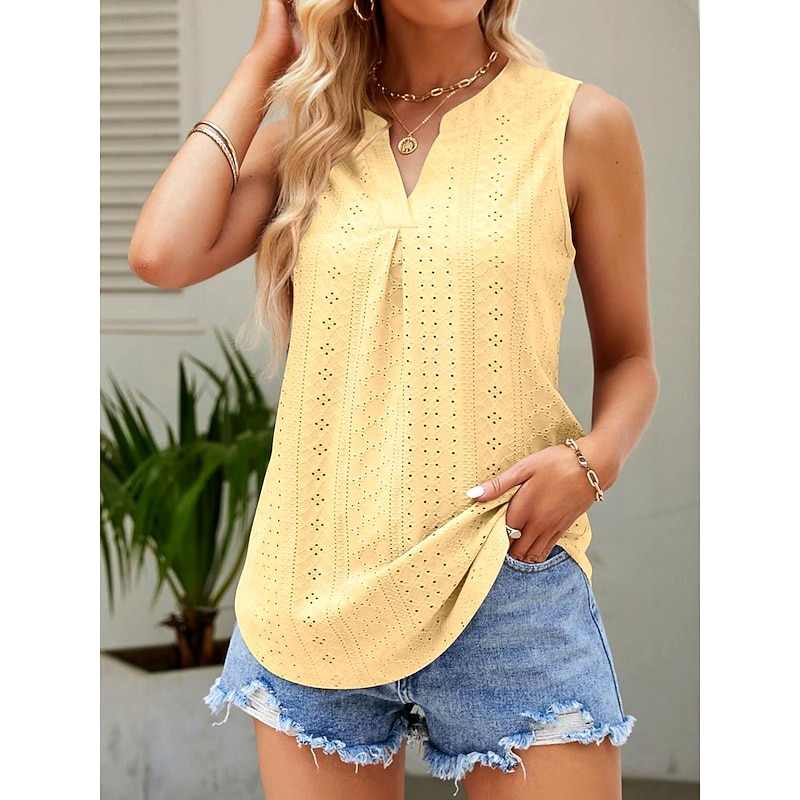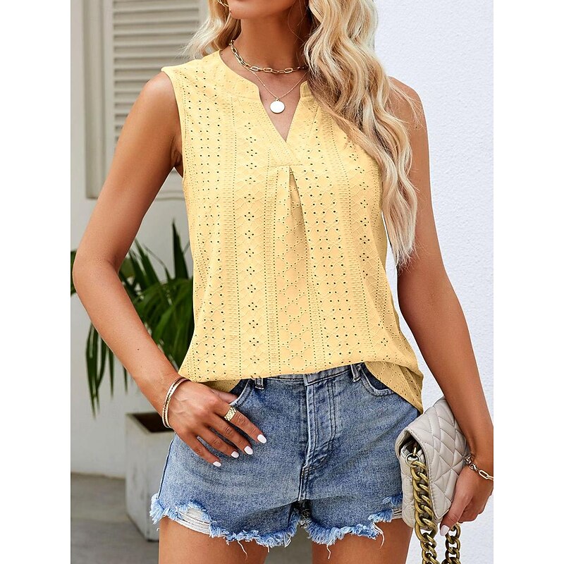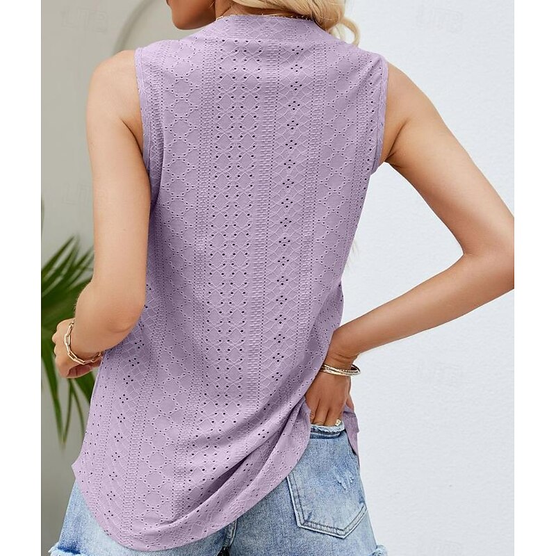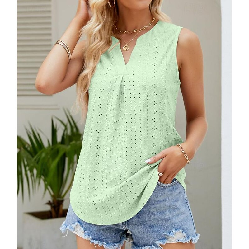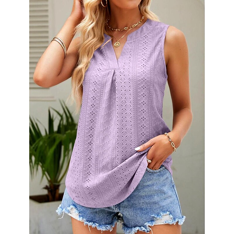 Highlights [Fabric] : Crafted from breathable and lightweight lace, this women's shirt ensures comfort and ease during the warm summer months. The delicate eyelet pattern not only adds a touch of sophistication but also provides slight elasticity for enhanced movement. [Style] : Featuring a classic crew neck and short sleeves, this lace shirt offers a casual yet chic style that pairs effortlessly with a variety of summer ensembles. Its soft fabric and elegant design make it a versatile wardrobe staple. [Design Highlights] : This shirt boasts a deep V-neck that adds an elegant touch, complemented by the intricate lace material that offers a feminine flair. The fine lace detailing enhances its overall appeal, making it perfect for fashionable women. [Occasions] : Ideal for summer outings, casual gatherings, or even a relaxed day out, this top seamlessly transitions from day to night. Whether paired with denim shorts for a laid-back look or dressed up with a skirt, it suits a wide range of occasions. [Size Range] : Available in various sizes, from S to 2XL, this lace shirt caters to a broad audience, ensuring a perfect fit for different body types.