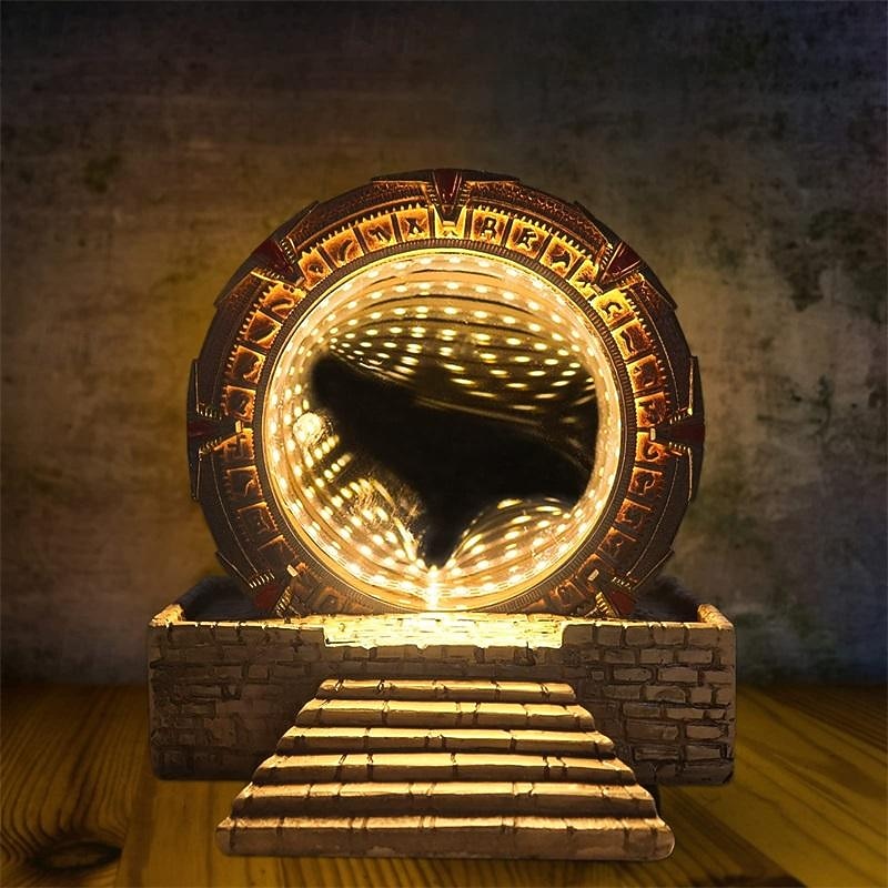 Atlantis Stargate Mirror LED Night Light Star Gate 3D Time Tunnel Ring Mirror Movie Replica Model Cospaly Halloween Party Prop Resin Collectable Toy Home Decor Ornament Gift 1