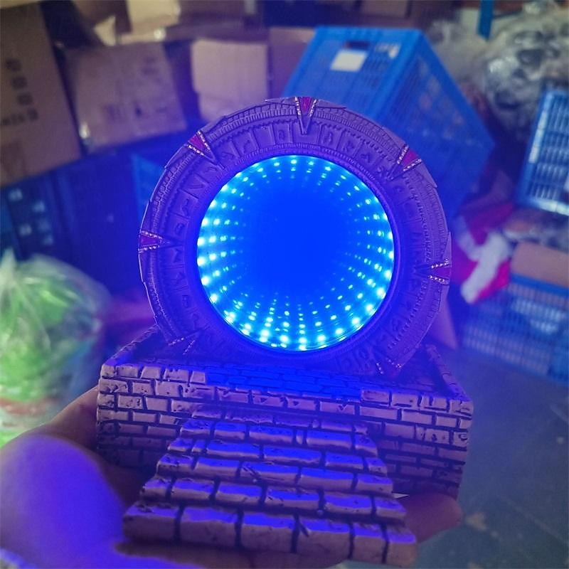 Atlantis Stargate Mirror LED Night Light Star Gate 3D Time Tunnel Ring Mirror Movie Replica Model Cospaly Halloween Party Prop Resin Collectable Toy Home Decor Ornament Gift 11
