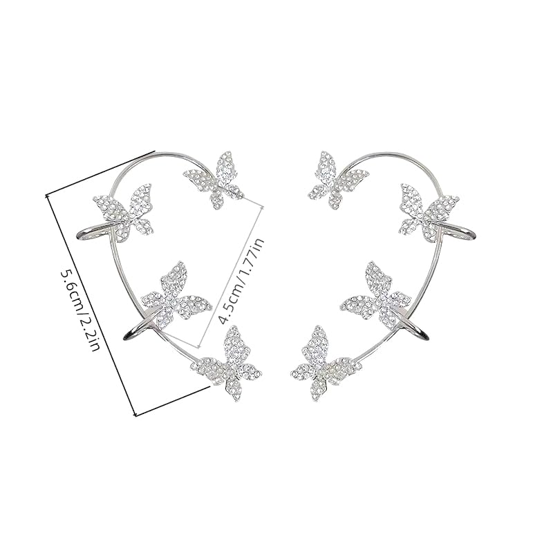 More information about 1Pair Butterfly Ear Cuffs, Drop Earrings, Rhinestone Embellished, Fashion Jewelry for Women, Trendy Accessories for Casual Wear, Stylish Dangle Earring for Everyday Use (Silver)