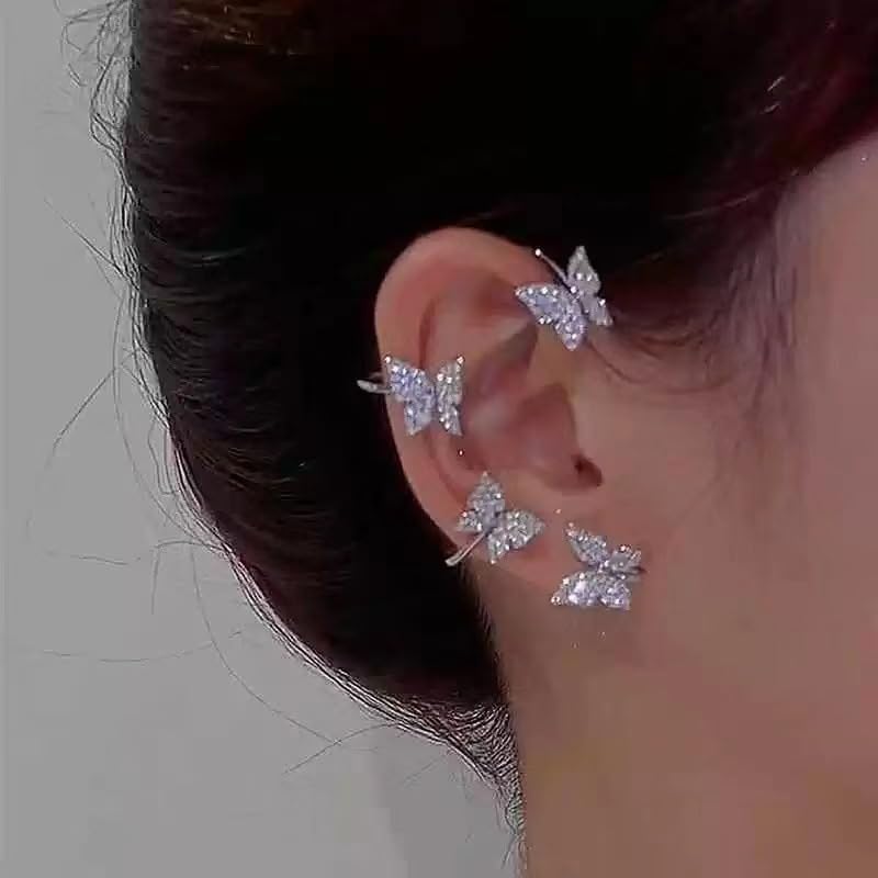 HOT ! 1Pair Butterfly Ear Cuffs, Drop Earrings, Rhinestone Embellished, Fashion Jewelry for Women, Trendy Accessories for Casual Wear, Stylish Dangle Earring for Everyday Use (Silver)
