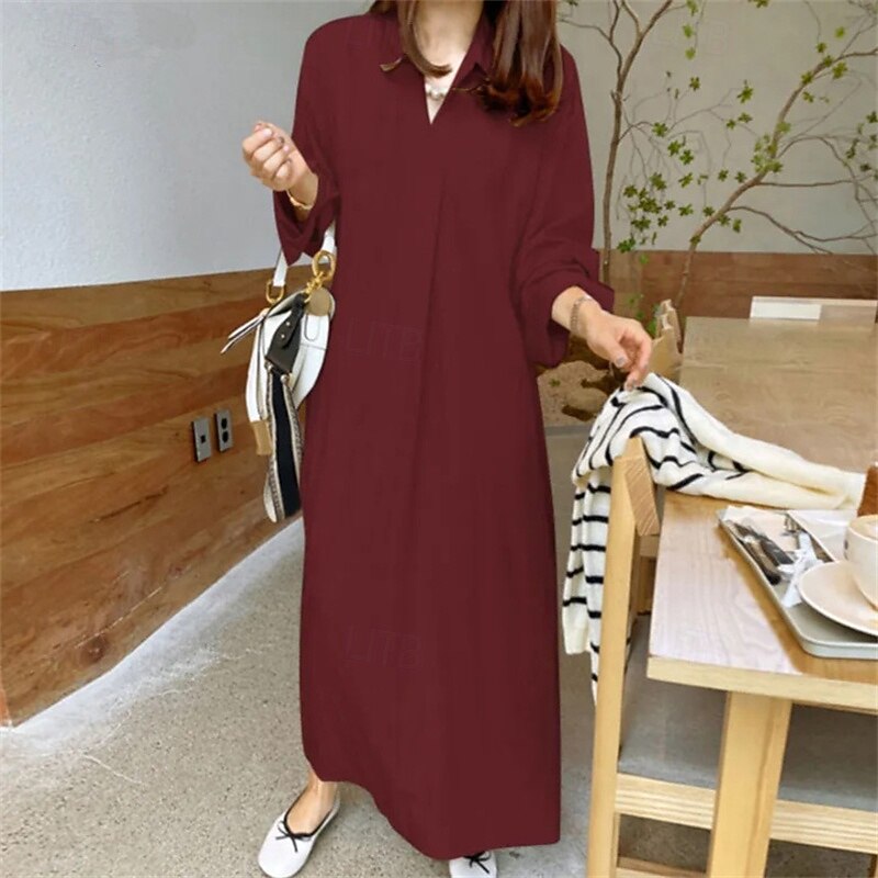 More information about Women's Long Dress Maxi Dress Linen-Inspired Dresses Casual Dress Stylish Casual Vacation Daily Date Regular Fit Plain Long Sleeve Lapel Black Wine Khaki Army Green Summer Spring