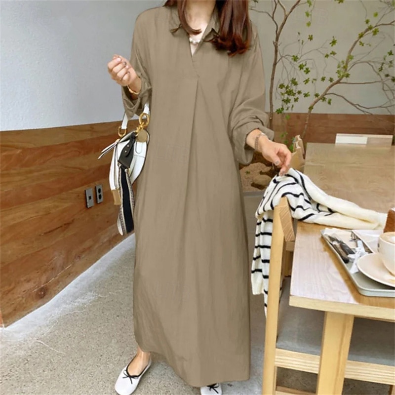 Women's Long Dress Maxi Dress Linen-Inspired Dresses Casual Dress Stylish Casual Vacation Daily Date Regular Fit Plain Long Sleeve Lapel Black Wine Khaki Army Green Summer Spring 17