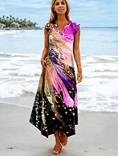 More information about Women's Maxi Dress Sundress Shift Dress Vacation Boho Beach Party Beach Standard Fit Ombre Graphic Galaxy Sleeveless V Neck Pink Summer Spring