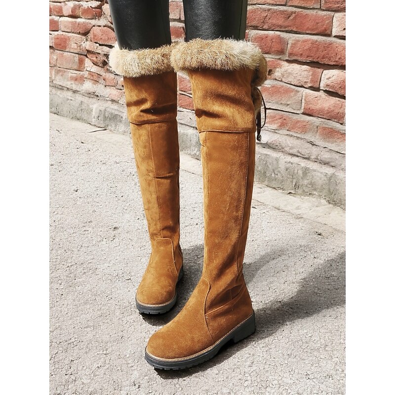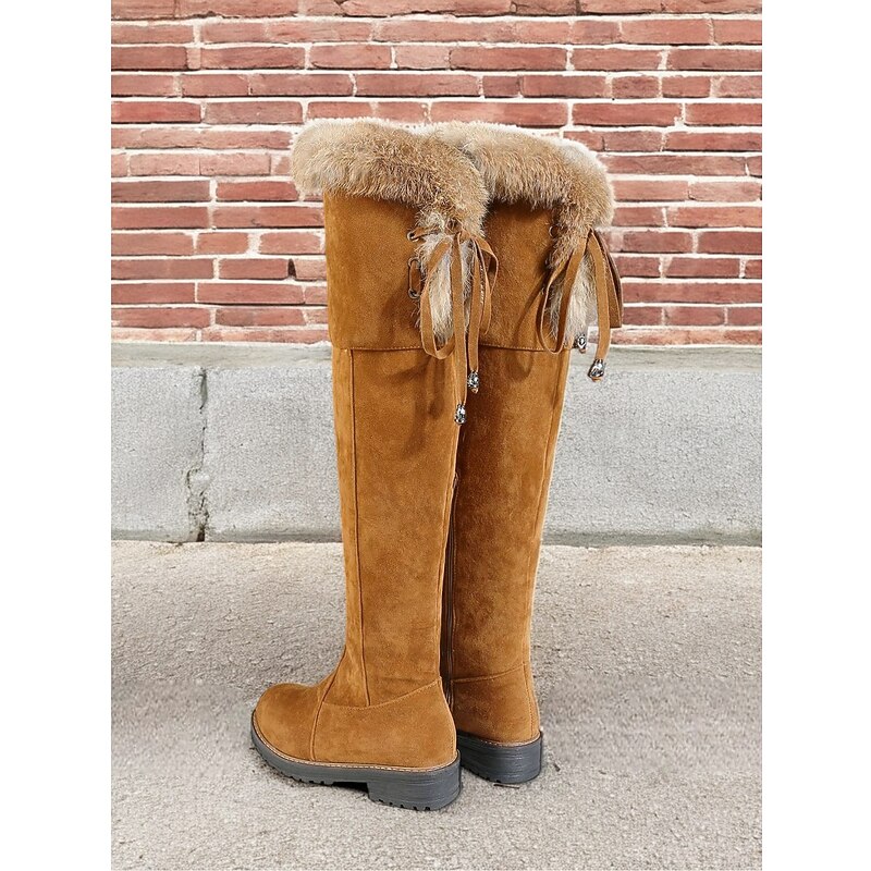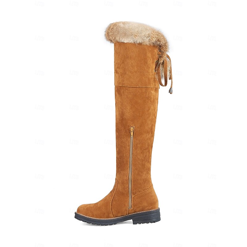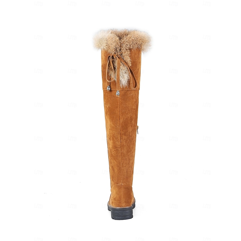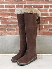 Women's Over-the-Knee Brown Faux Suede Boots with Faux Fur Trim – Cozy and Stylish Winter Footwear for Extra Warmth 22