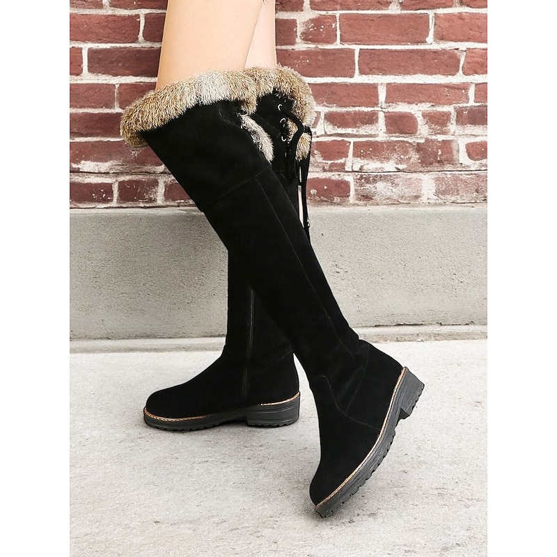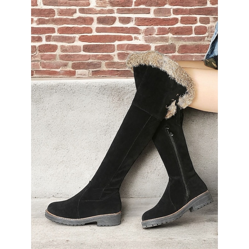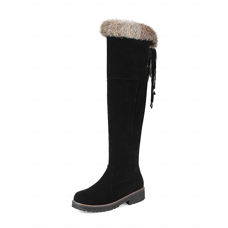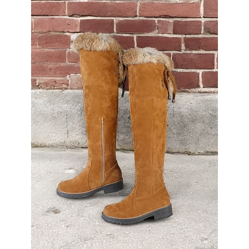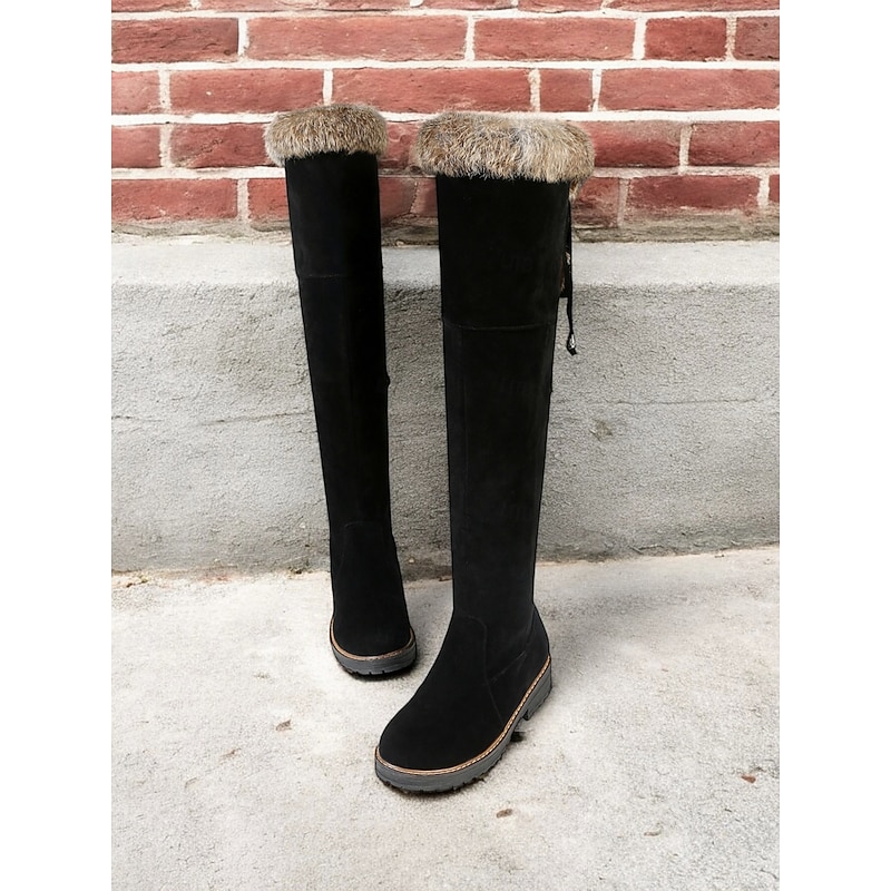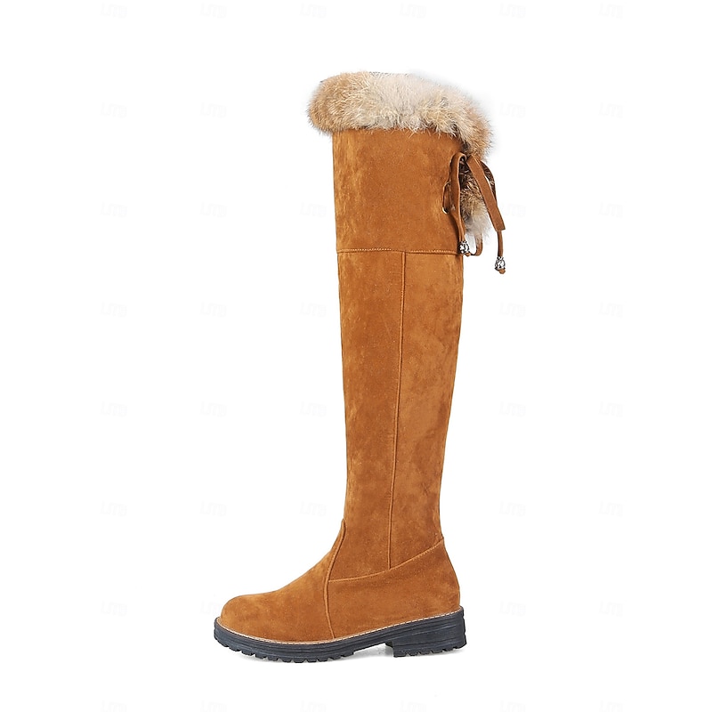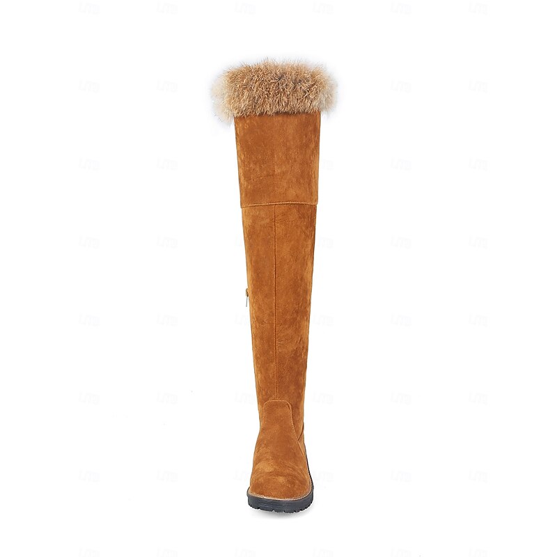 Highlights [Fabric] : Crafted from luxurious faux suede with a plush faux fur trim, these over-the-knee boots offer both comfort and a sophisticated, classic look. The soft materials ensure extra warmth and coziness, perfect for the chillier months. [Style] : Designed with an elegant over-the-knee silhouette, these boots provide a chic and timeless style. The low heel and round toe contribute to a comfortable fit, making them ideal for all-day wear. [Design Highlights] : Featuring a sleek side zipper for easy wearability, these boots are lined for additional comfort and insulation. The stylish faux fur trim at the top adds a touch of sophistication and warmth, while the sturdy rubber sole ensures excellent traction and durability. [Occasions] : Perfect for daily wear during the fall and winter seasons, these boots are a fashionable and functional choice for completing any casual or plush winter outfit. Whether you're heading out for a snowy adventure or simply running errands, they provide the ideal blend of style and practicality. [Size Range] : Available in a wide range of sizes, from US5.5 to US10.5, these boots are designed to accommodate various foot sizes and ensure a perfect fit for every wearer.