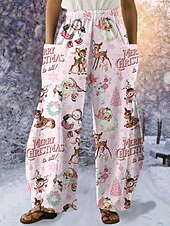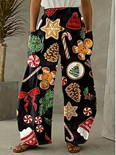 More information about Women's Wide Leg Chinos Vacation Vintage Ethnic Style Full Length High WaistPantsUgly Christmas Graphic Christmas Elastic Waistband Inelastic Formal Vacation Street Black Pink Summer Spring Loose Fit