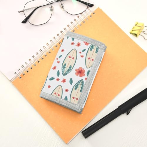 ALAZA Kids Wallets for Boys Girls Toddler Trifold Wallet Children Small Surfboard Hibiscus with Zipper Coin Pocket 1