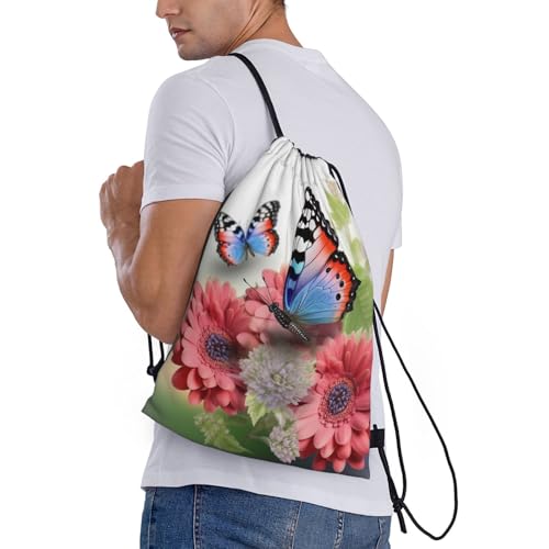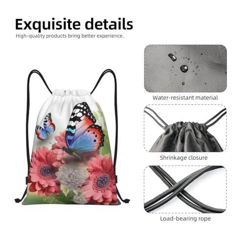 Flower Butterfly Drawstring Backpack Water Resistant String Bag Sports Sackpack Gym Sack Beach Swim Travel Daypack 1