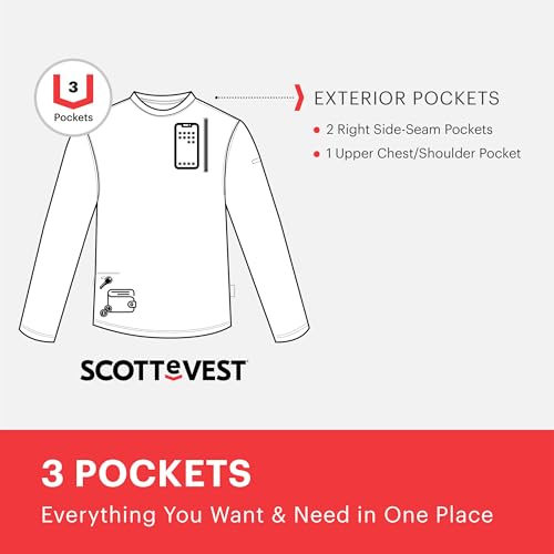 HOT ! SCOTTeVEST Long Sleeve Performance T-Shirt for Men - 3 Hidden Pockets - Moisture Wicking Shirt for Travel & More