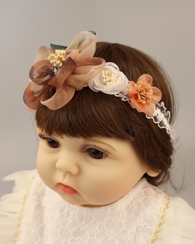 Bethynas baby girls Lace Flower Headband Gauze Floral Elastic Infant Hairband Birthday Party Princess Hair Accessories for Newborn Toddlers (Brown) 7