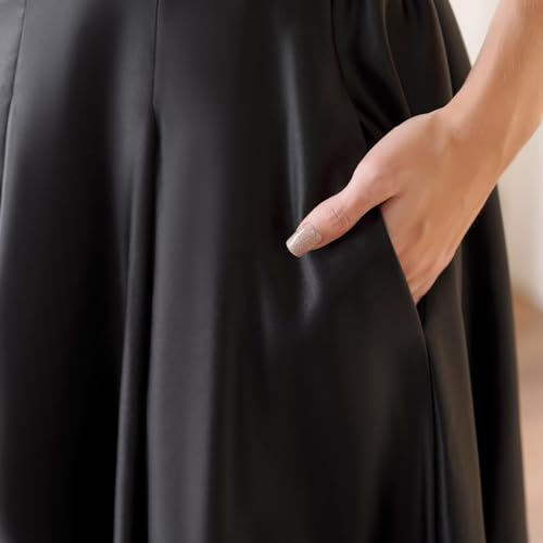 Women's Front Pleated Back Elastic Formal Prom Party Maxi Skirt A-Line Satin Skirts with Pockets 5