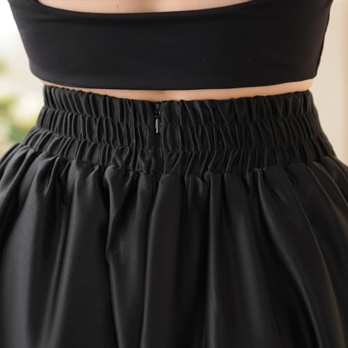 More information about Women's Front Pleated Back Elastic Formal Prom Party Maxi Skirt A-Line Satin Skirts with Pockets