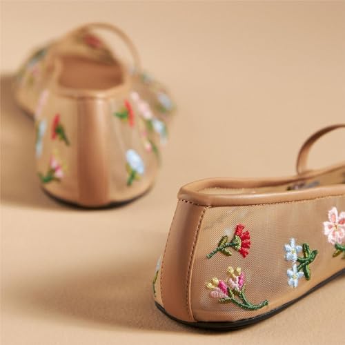 Women's Mesh Ballet Flats Embroidered Floral Mary Jane Flats Casual Comfortable Round Toe Ballerina Shoes 5