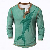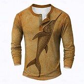 More information about Men's Graphic Fish Henley Shirt Tee Long Sleeve Vintage Fashion Designer Outdoor Casual Daily Spring & Fall Blue Brown Green Henley Henley T-Shirt