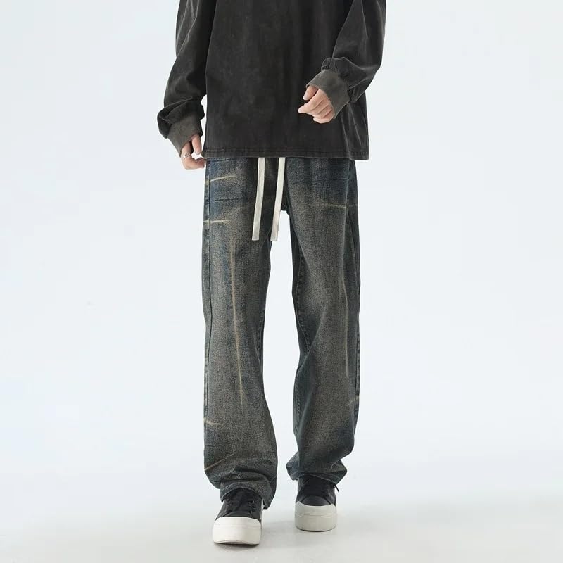 More information about American Washed tie dye Jeans for Men,high Street Drawstring Loose Straight Leg Pants