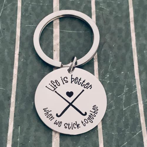 HOT ! Field Hockey Charm Keychain, Life is Better When We Stick Together Field Hockey Jewelry for Women, Teens and Girls, Gift for Female Field Hockey Players
