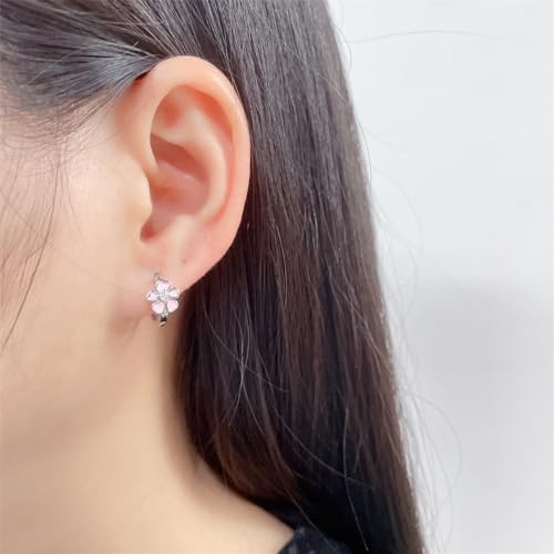HOT ! Tiny Cute Pink Flower CZ Small Hoop for Women Girls Teens Dainty Silver Plated Enamel Daisy Flowers Mini Cartilage Huggie Hoops Hypoallergenic Sleeper Hooped Fashion Jewelry Gifts Her