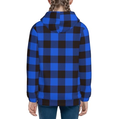Buffalo Plaid Blue Black Kids Pullover Hoodies Boys Zip Up Sweatshirts Girls Athletic Clothes with Pocket 3
