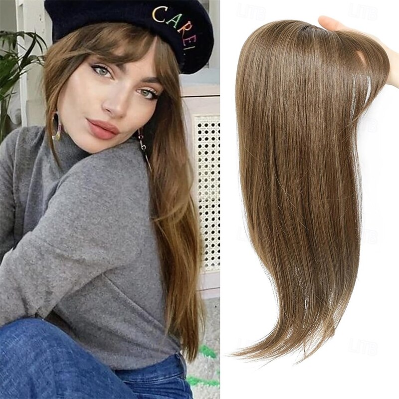 HOT ! Hair Topper 18 Inch Long Hair Toppers for Women with Thinning Hair 360 3D Clip in Blunt Wispy Bangs