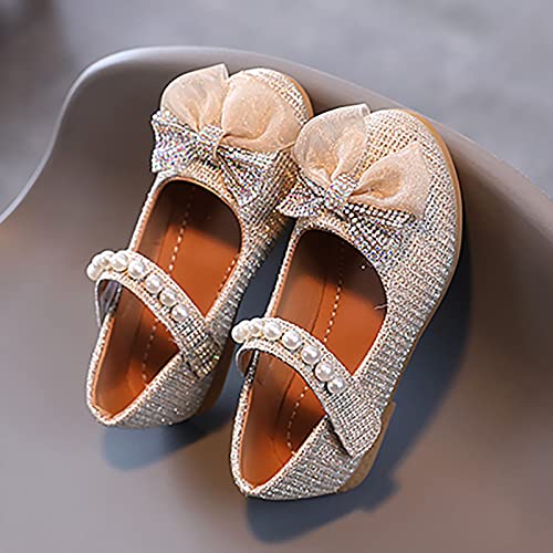 Girls Sandals Children Flat Heels Princess Shoes Kids Sandals Comfortable Soft Soles Leather Shoes Slippers Kids Girl (Gold, 23 Toddler) 4