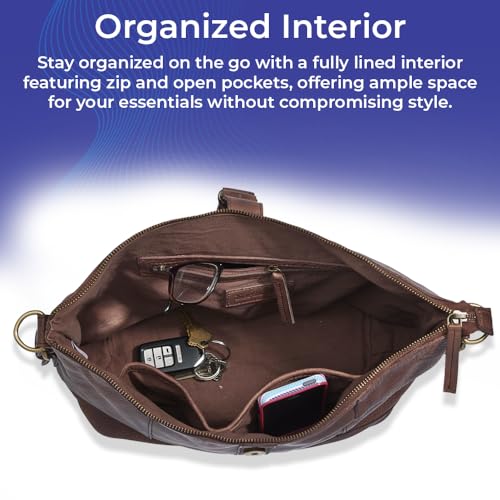 More information about Genuine Leather Shoulder Bag, Rich Chocolate Brown Purse for Women, Handbag with Multiple Pockets, Top Zip Closure, Adjustable Strap