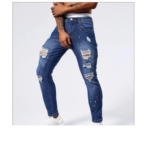 HOT ! Men's Perforated Slim Fit Elastic Casual Versatile Street Tight Jeans
